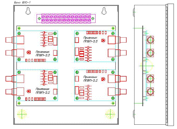Один из возможных вариантов монтажа передатчика без корпуса приведен на рис.2, а сборка из четырех приемников в боксе приведена на рис.3.