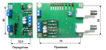 ![]() Рис 1. Передатчик и приёмник видеосигналов для витой пары ППВП-2.2_КМКС |